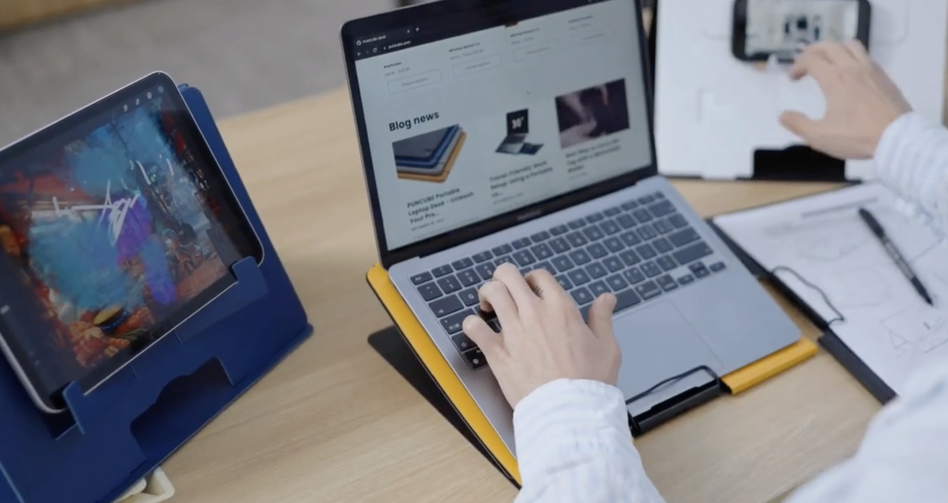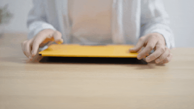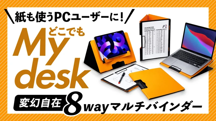 「Workelf」は、紙を挟むだけではなく、角度を調整できるデバイススタンドとしても使える書類バインダー。
