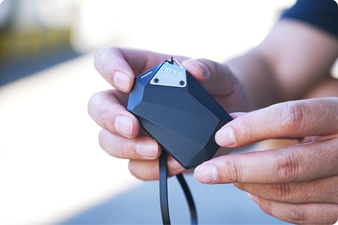 「RUNK」はNFCタグ搭載のコンパクトなモバイルバッテリー。小型でカバンなどに吊り下げられるので、持ち運びやすいサイズ。