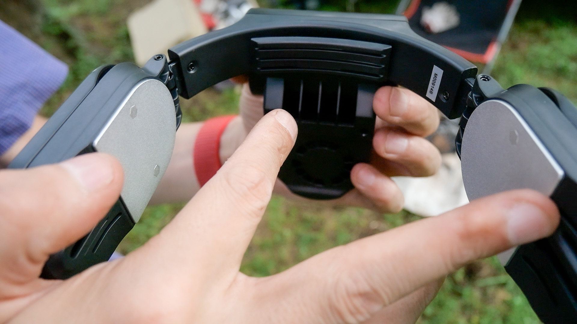 従来のペルチェ素子による冷却プレートに加え、ファンの付いた交換バッテリーも同梱されています。これでダブルで首元を冷やしてくれるのです。