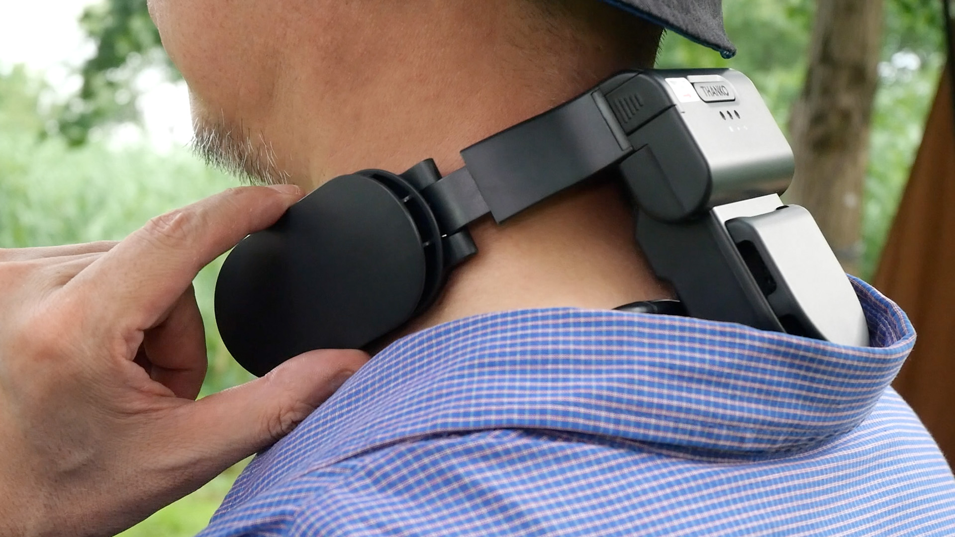 電源を入れると冷却プレートが直ぐに冷たくなり、首を両側から挟むことで当てた部分を直接冷やすという仕組み。強弱の切り替えのほか、長時間冷たさを感じられるゆらぎモードも搭載されています。