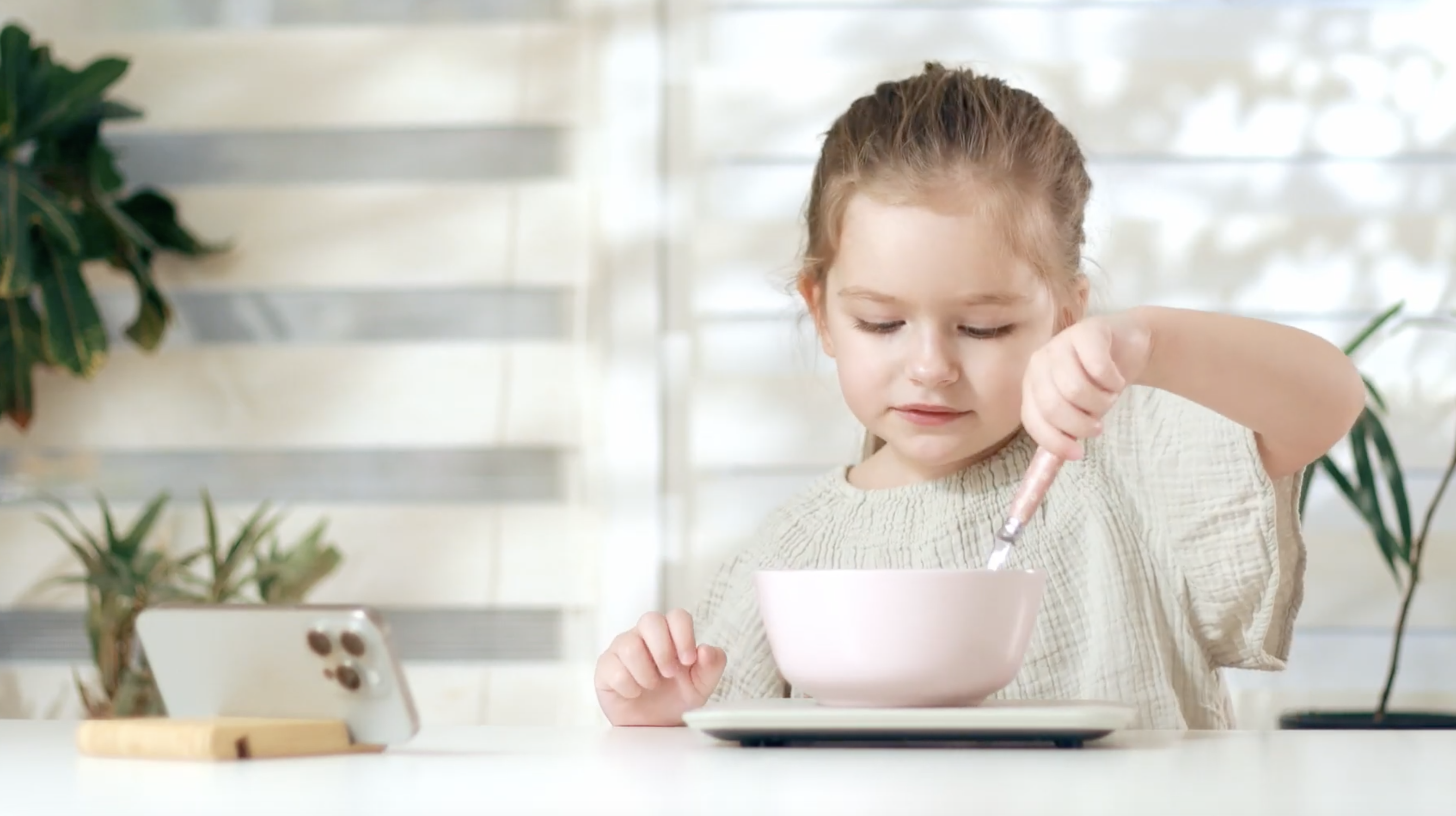 「TUMMY Plate Coaster」は、Bluetooth対応の計量プレートとスマホアプリがセットになったもの。計量プレートに子供のお皿を置いて使用する。