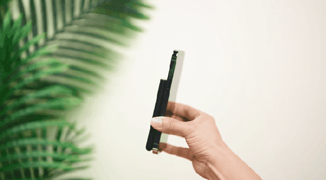 「PB SLIM」は重さ124g、厚さ9mmのスリムなモバイルバッテリー。MagSafeに対応し、iPhoneにくっつけて手軽に持ち運べる。