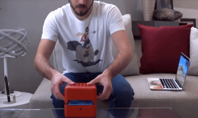 上下の点を目印に、ひねって向きを合わせることで起動する。
