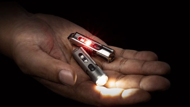 「HUNT XR」は長さ約6cm、親指サイズのLEDライト。軽くて丈夫なチタン製で、IPX6の防水性能を備えるほか、アウトドアで役立ちそうな複数の機能を搭載している。