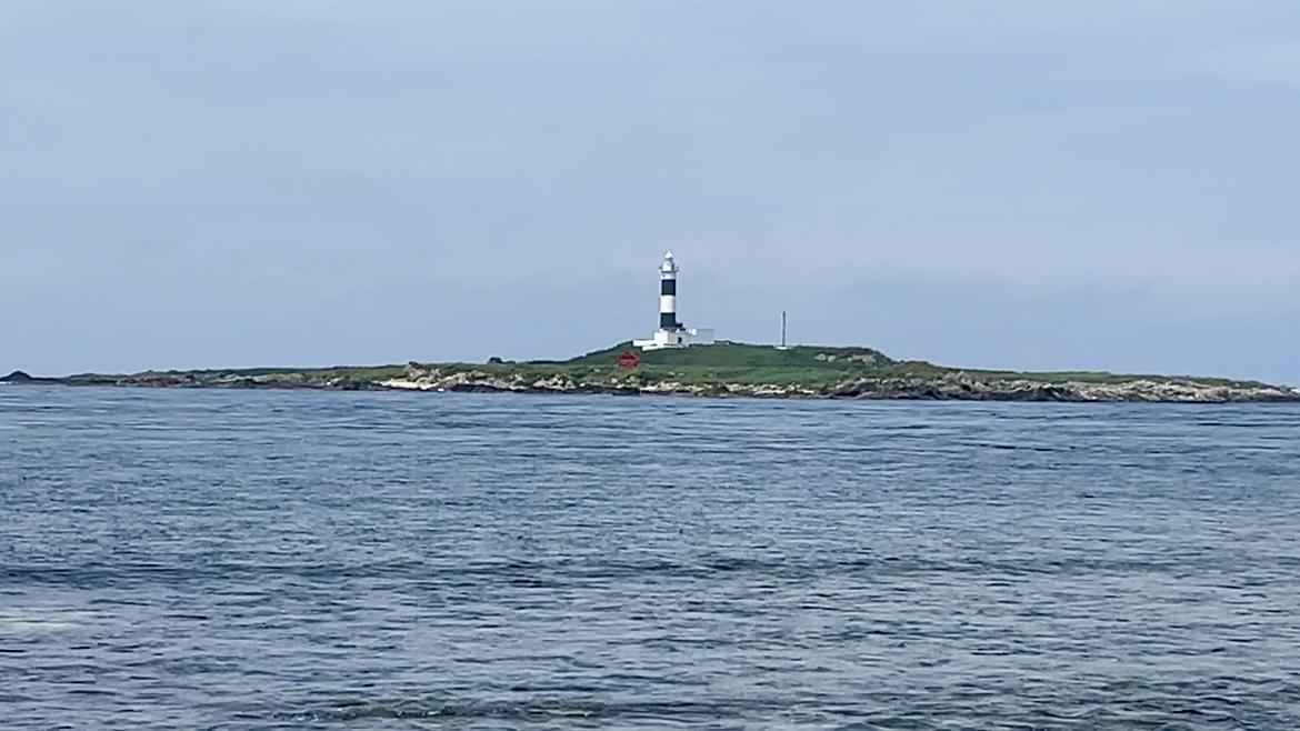大間の町を訪れる前に、まずは本州最北端の地の、大間崎へ。看板が建つ園地から600mほど沖合に浮かぶ弁天島には、白黒ボーダーの塗色の大間埼灯台が建つ。あたりの海は底が見えるほど澄み、凪いで穏やかな津軽海峡とともに、北の地ながら明るいイメージの岬である。
