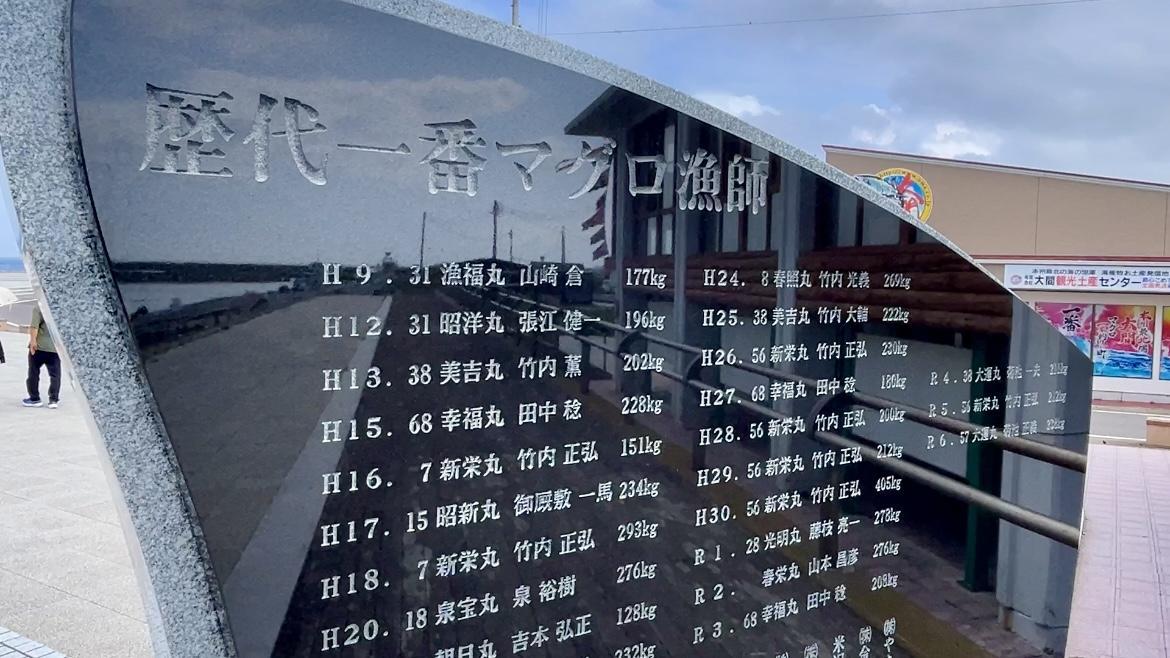 レストハウスの前には、演歌歌手の福田こうへいが歌った「一番マグロの謳(うた)」の碑があり、その年の初競りで最高値がついた「一番マグロ」を釣り上げた、歴代の漁師の名が刻印。岬の付近をめぐれば、大間のマグロにまつわる様々な記録を学べる。