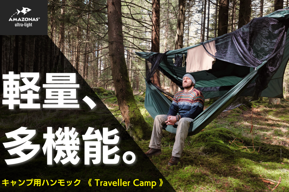 「Traveller Camp」は、防水タープ・かや・ハンモックが一緒になったキャンプ用ハンモック。