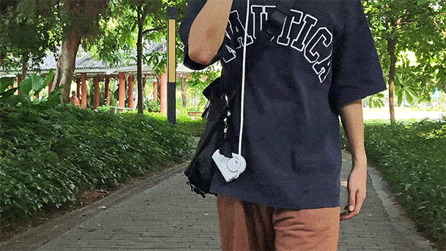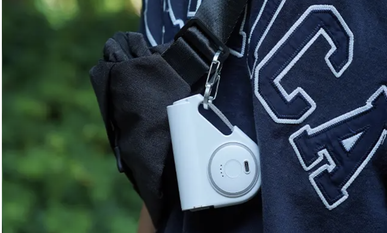 「PINSHO」は、フックを備えており、カバンやベルトに取り付けられる。これにより、移動中でも両手を自由に使え、通話中や他の作業をしていても充電できる。