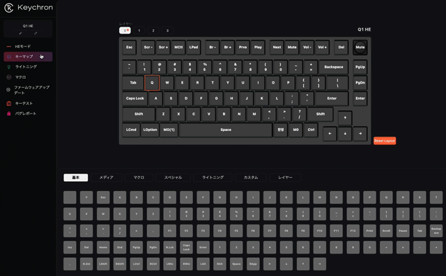 これらの設定は「Keychron Launcher Webアプリ」で設定できる。