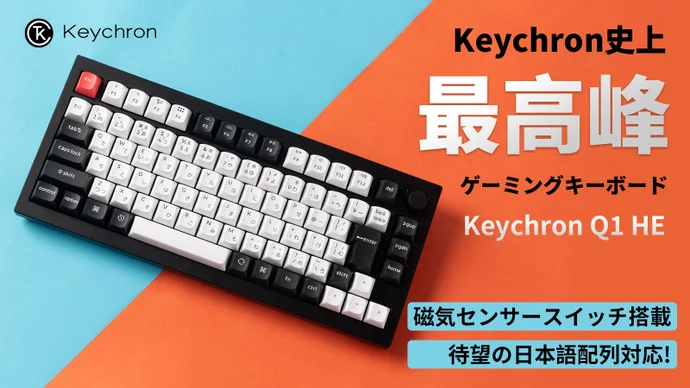 「Keychron Q1 HE」は、磁気センサースイッチを搭載したカスタム可能なワイヤレスキーボード。記事執筆時点でクラウドファンディングサイトMakuakeにて、34,350円(税込)から支援購入できる。配送予定は2024年11月下旬となっている。