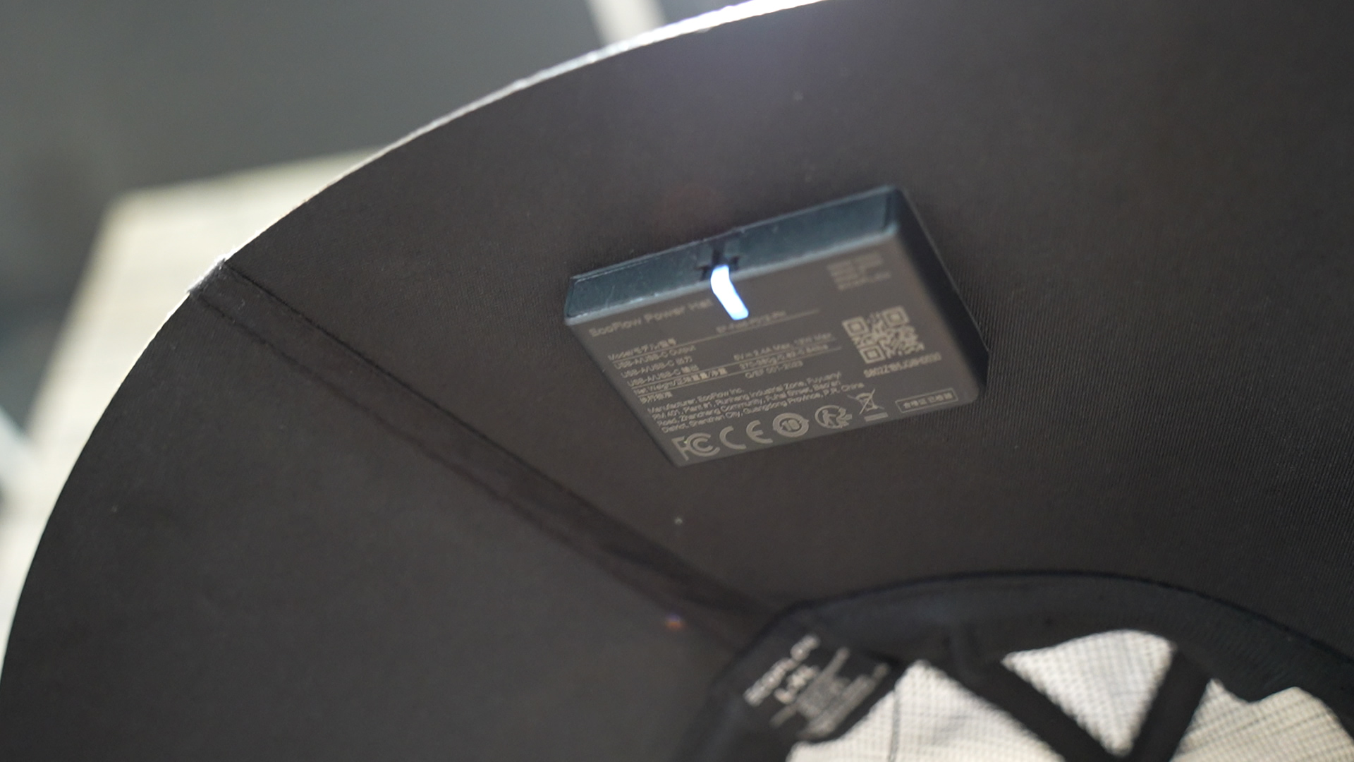 「EcoFlow Power Hat」は、帽子のつばの上面に取り付けられたソーラーパネルにより太陽光発電を行う。発電した電気は、帽子後ろ側のつば下面についたモジュールから充電可能で、最大出力は12W。端子はUSB Type-AとType-Cの2つあり、同時に使用可能だ。