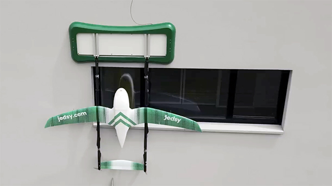 また、「Jedsy Mailbox」と名付けられた充電機能付きのドッキングシステムを設置すると、窓やベランダでも離着陸が可能。発送にかかる時間や手間を短縮できるとしている。