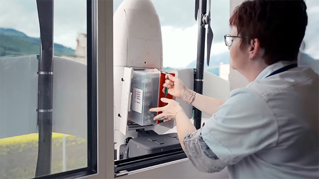 「Jedsy X」は、リヒテンシュタインとスイスに拠点を置く企業が開発中の配達用ドローン。窓やベランダからでも離着陸でき、都市部でも比較的導入しやすいのが特徴だ。