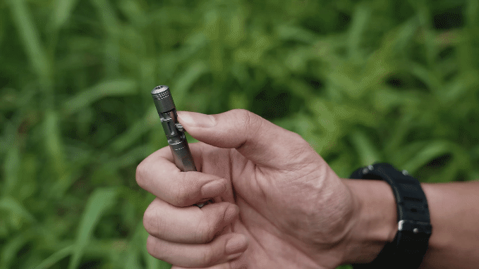 「Titanium Bolt Pen」は、筆記用具として使えるほか、窓ガラスなどを割れるという。ペンの上部は小さな丸いタングステン鋼を出し入れでき、この部分でガラスが割れる。使用後はペンの中に収納しロックが可能。