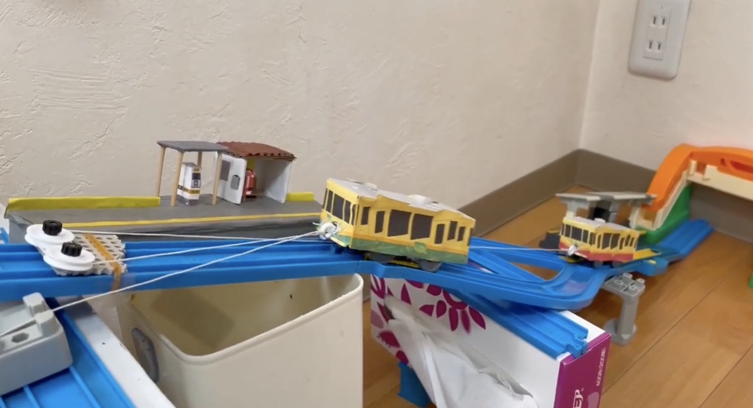 「いわんご」さんは、長年親しまれているプラレールを使った作品を手がけるクリエイター。その中で、彼が制作した「高尾山ケーブルカー」は、本物の高尾登山電鉄ケーブルカーの動きを再現している。
