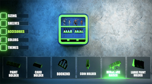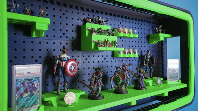 パーツはペグボード、カードホルダー、ブックエンドなど様々なモジュールが用意されていて、LEDライトを組み込む設計も可能。印刷したパーツはレゴ感覚で組み立てられるという。