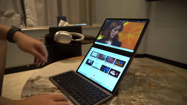 2画面で作業効率アップ? 11.5インチのデュアルディスプレイノート型PC「AX10」