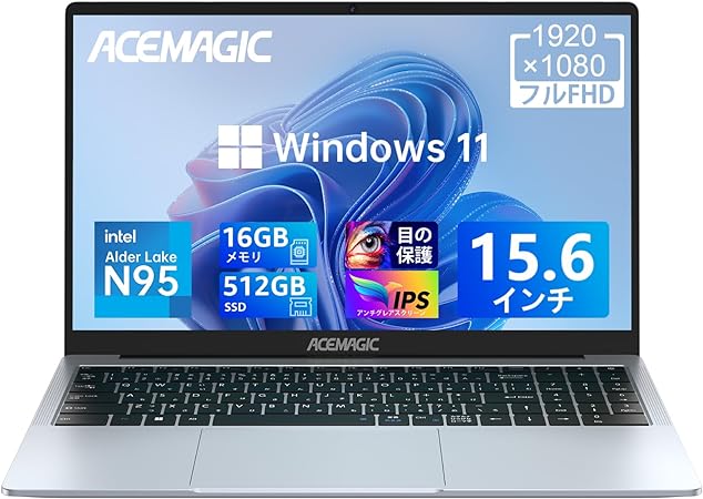 • ノートパソコン 軽量 ノートpc N95 カクカク感じない 2023新版 15.6インチ パソコン ノート16GB 512GB SSD laptop 最大3.4GHz 4C4T Windows 11 高速放熱静音 FHD1080P/IPS広視野角/Webカメラ/高速WiFi5搭載/Bluetooth/Type-C(データ)HDMI/日本語キーボード(silver)