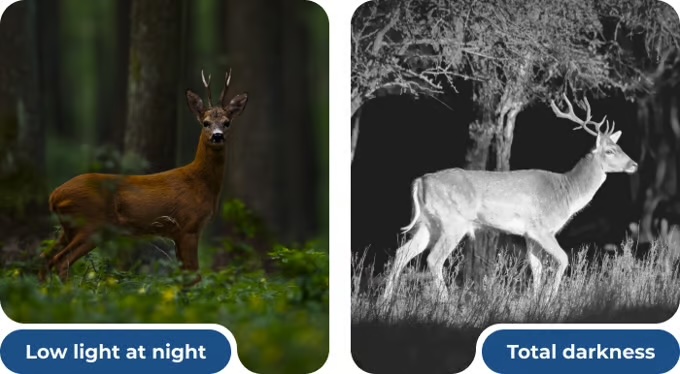 • Experience the thrill of the night like never before with the first dual-screen, full-color, high-resolution night vision goggles