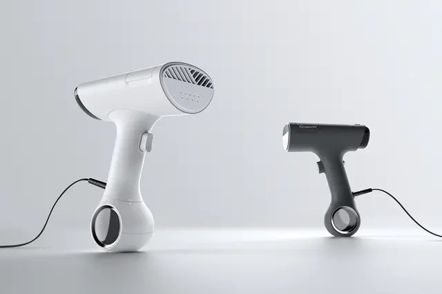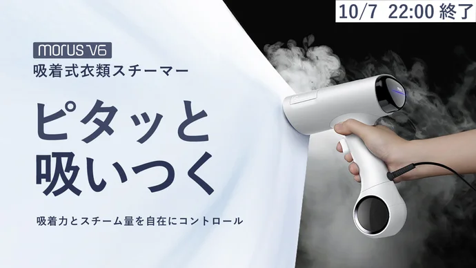 「Morus V6」は、衣類に吸いつきながらスチームでシワを伸ばす、衣類スチーマー。