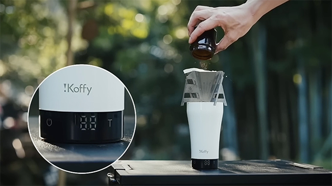 「GoBrew」はスマートスケール機能を搭載したコーヒー専用タンブラー。計量機を持ち歩かなくても、コーヒー粉とお湯や氷をちょうど良いバランスに調整してコーヒーを作れるという。