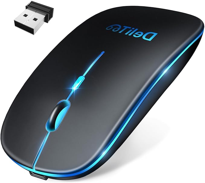 • マウス 無線 静音 【薄型&高精度・高感度】 ワイヤレスマウス 3段階DPI切替 7色ライト付き 2.4GHz 節電モデル 小型 光学式 高精度 左右対称 マウス 無線 充電式 軽量 握りやすい 簡単接続 携帯便利 パソコン マウス Windows Mac PC対応