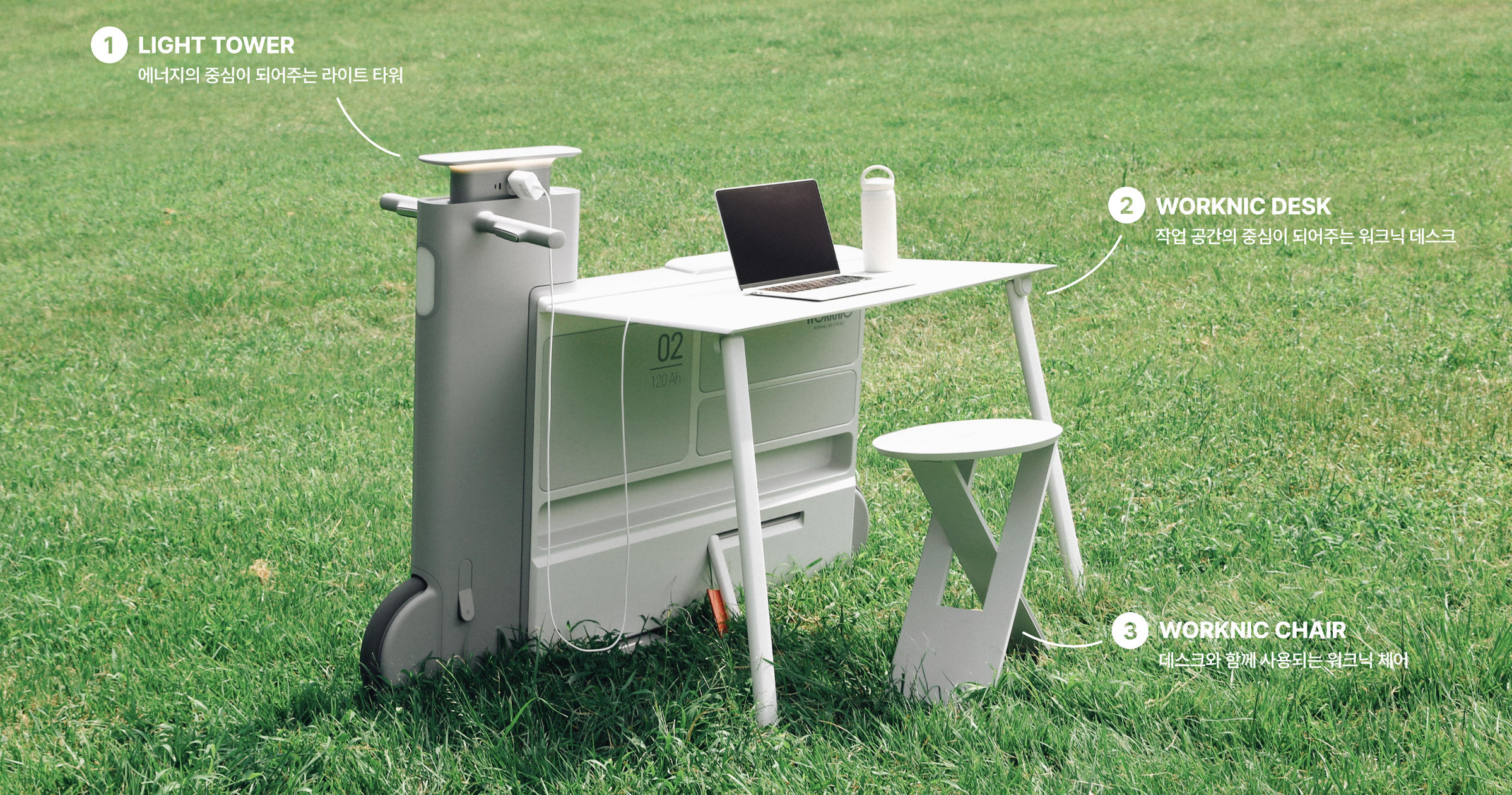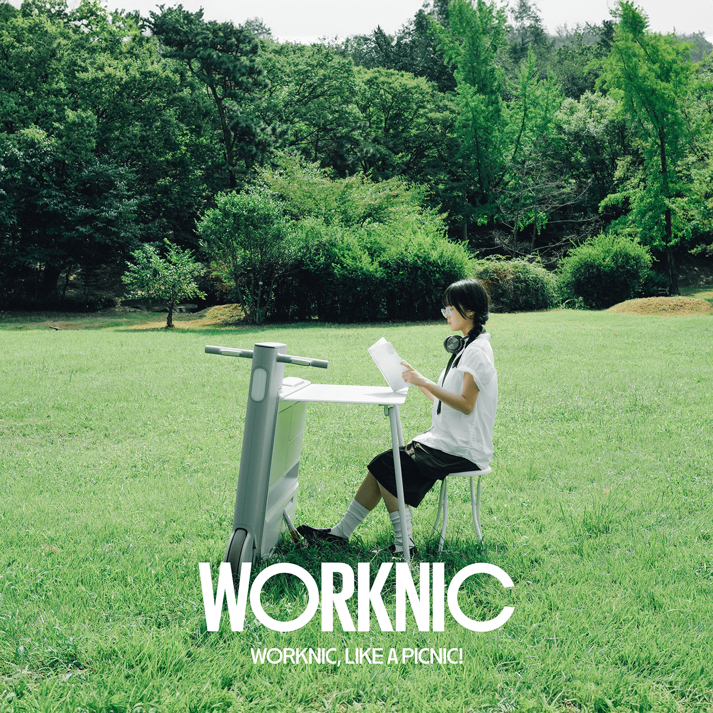 「Worknic」は、オフィスや自宅などいつもの作業環境にとらわれず、どこでも仕事ができるように設計された移動可能なデスク。