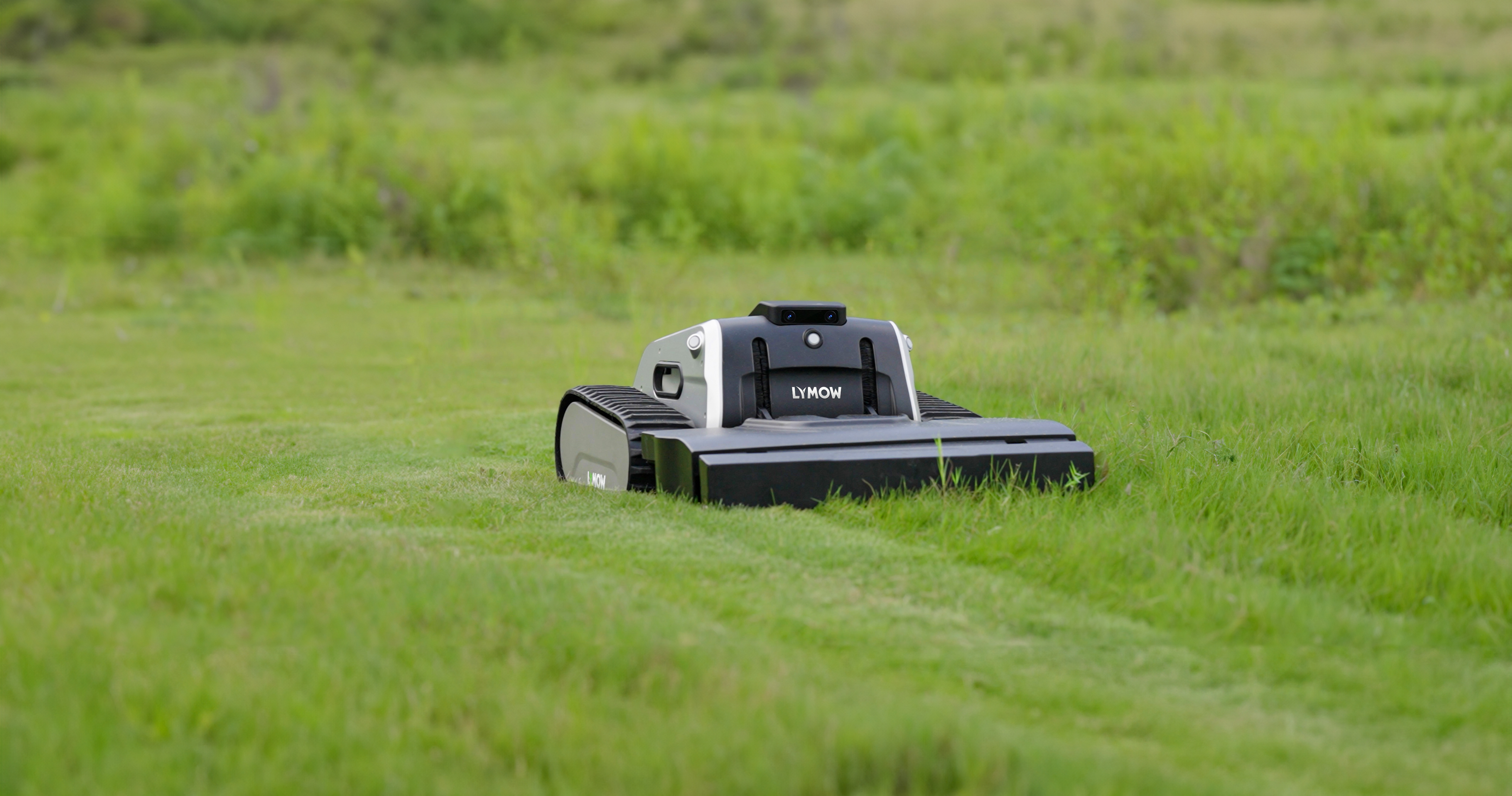 「Lymow One」は、充電ステーション付きの自動芝刈り機。地形や芝生を問わず、広い面積を刈り取れる。