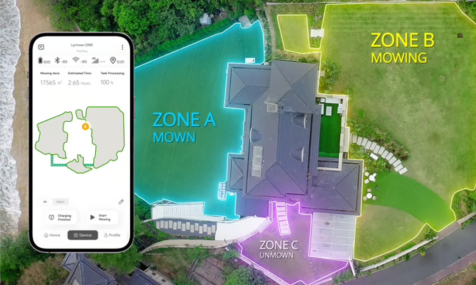 専用アプリを使えば、マルチゾーン管理、立ち入り禁止ゾーン、刈り取り高さ調整、データがクラウド上に送信されないようにするプライバシーモード設定、オフラインモード、スケジュール設定などを調整できる。