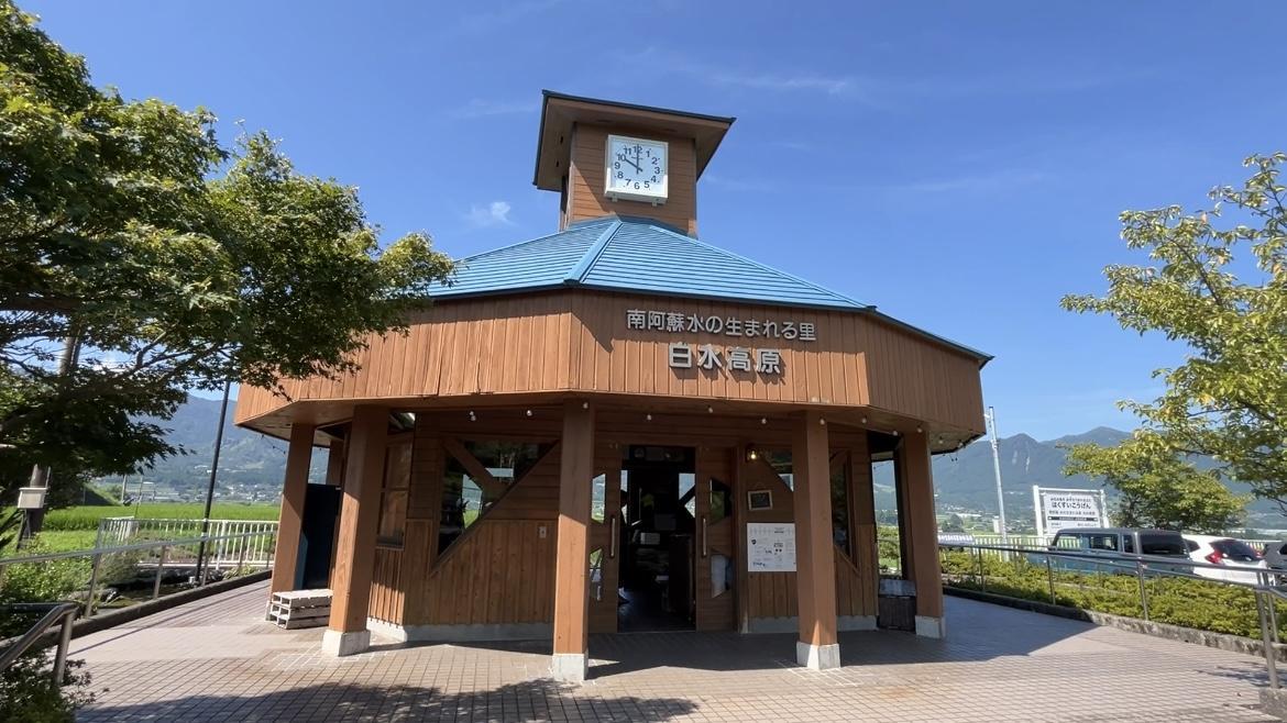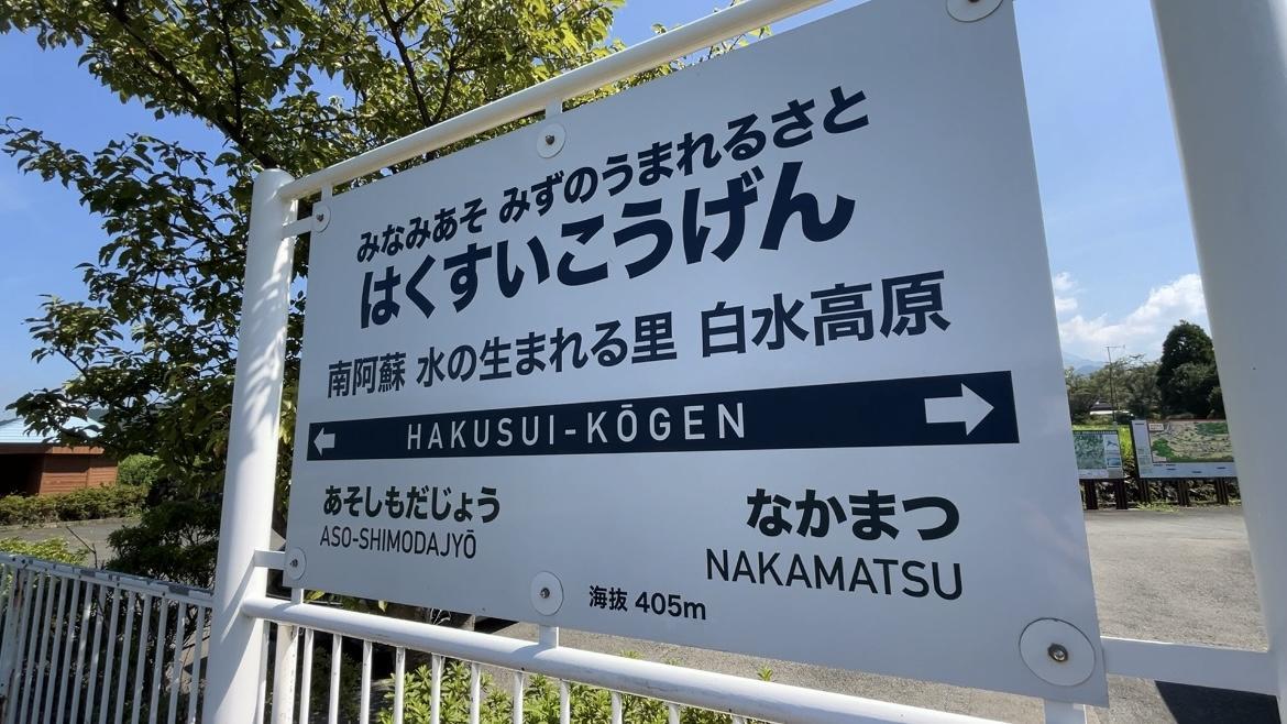 中松駅からさらにもう一駅先の、南阿蘇白川水源駅から徒歩5分の場所には、熊本県を代表する白川水源がある。阿蘇五岳の高岳の裾野に位置し、熊本県内を横断する全長74kmの白川の源流で、年間を通じて水温14度の水が湧き出している。