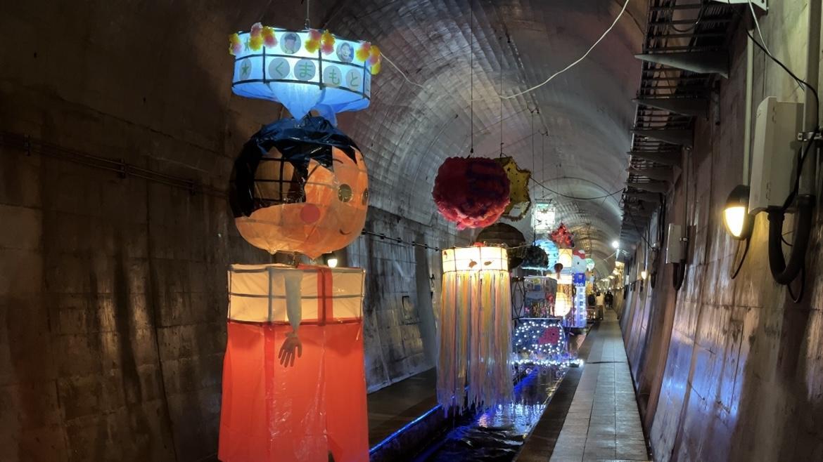 掘削された2055mのうち、一般公開されている範囲は坑口から550mまで。毎分32tの湧出量のおかげで、トンネル内は通年17度に保たれている。湧水が流れる水路沿いの各所に、イルミネーションやオブジェなどの装飾が施され、なかなかロマンティックな内装。