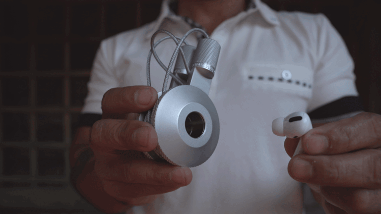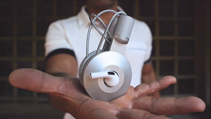 「JUMPROPEvolve」は、コンパクトに持ち運べるステンレス製のなわとび。持ち手の部分にAirPodsが収納できる。