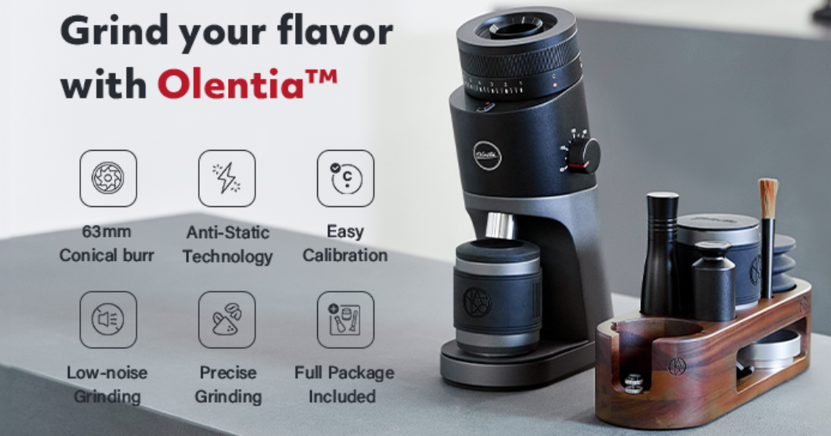 • 63mm Conical Burr | Anti-Static | Low Noise | RPM | Light Roast | Full Accessories Inc | Check out 'Grind with Olentia: Your brewing partner' on Indiegogo.