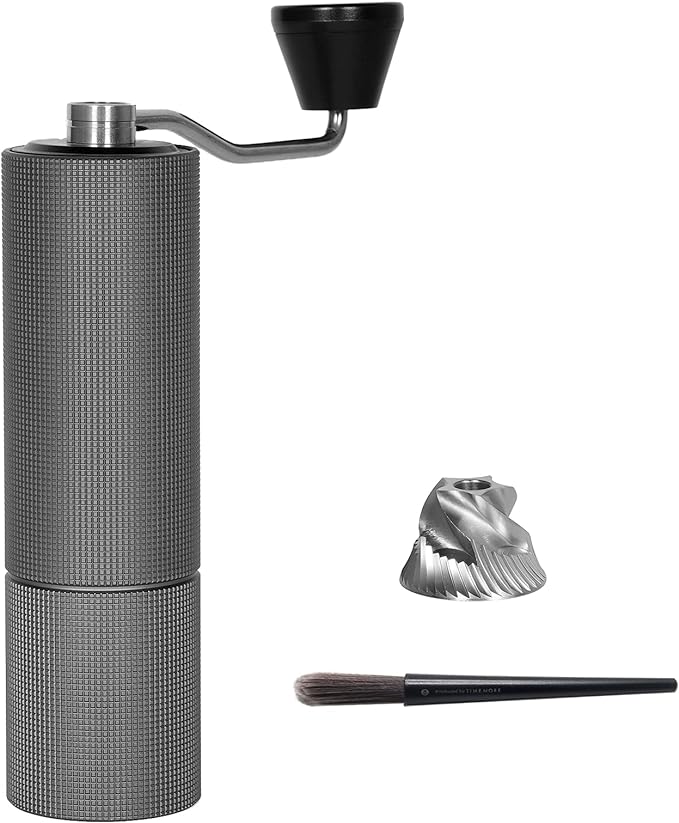 • TIMEMORE コーヒーミル 手動 タイムモア C2 Max 新しいより大きな容量25グラム 粗さ調整可能 軽量 省力性 携帯 お手入れ簡単 ステンレス製コーヒーミル ブラック (ブラシ付き)
