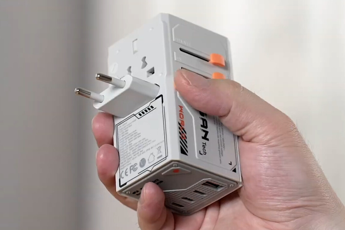 「VisaPro 170W」は、4種類のプラグを出し入れ可能で、ヨーロッパやアメリカなど、世界200カ国以上の地域のコンセントで使用できる。