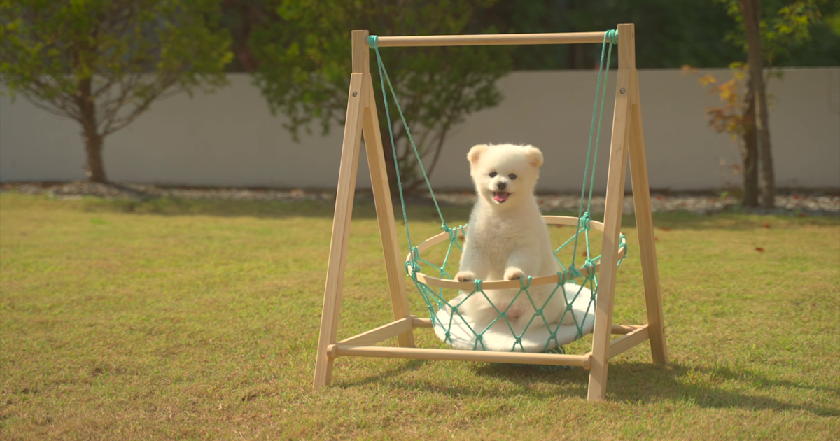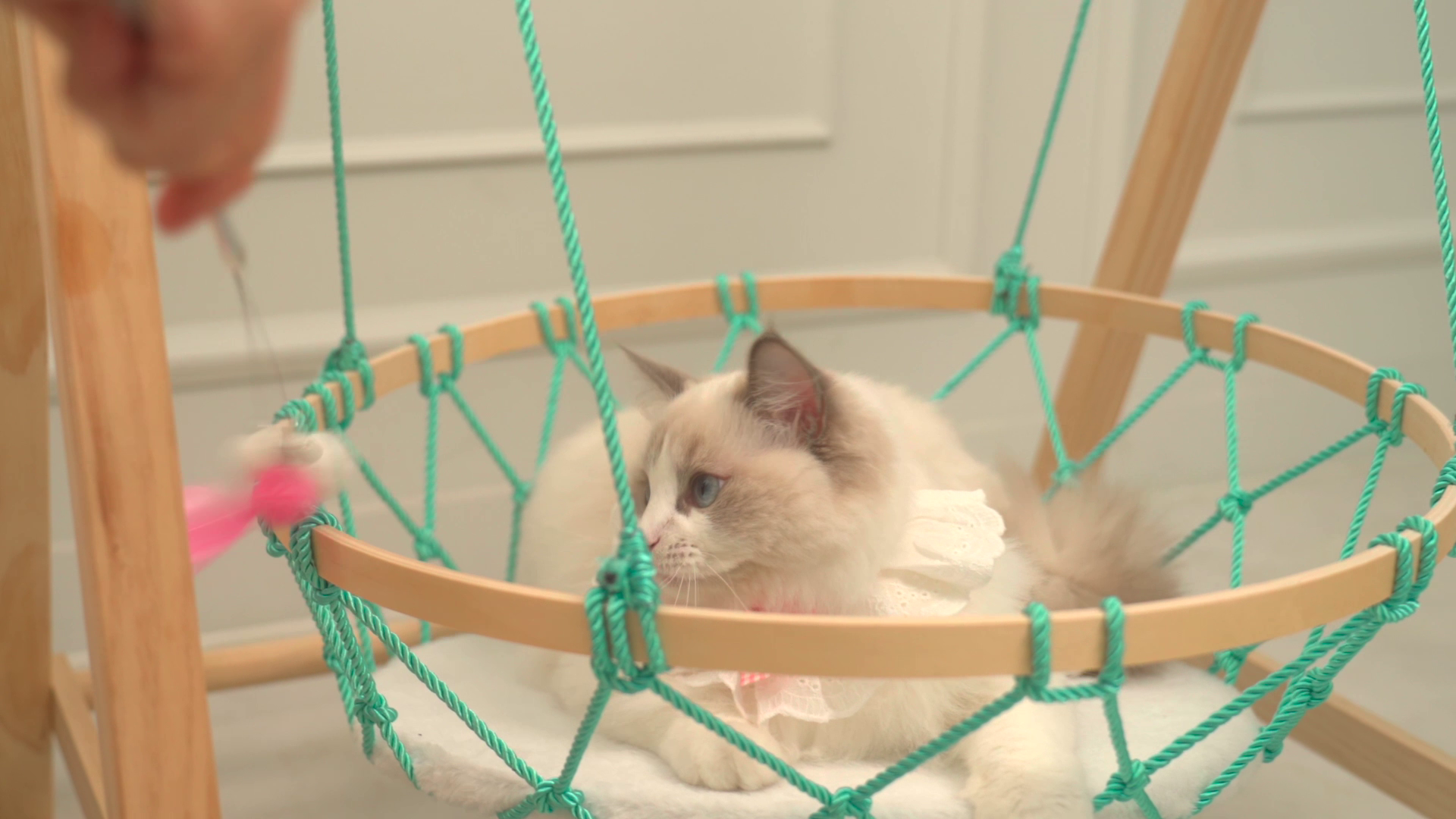 「Fluff Nest」は、軽量で持ち運びやすいため、リビングや寝室などどこへでも持ち運びが可能。さらに、固定型ベッドにはない自然な揺れを生み出し、ハンモック部分が優しく揺れることでペットに癒しを与える。