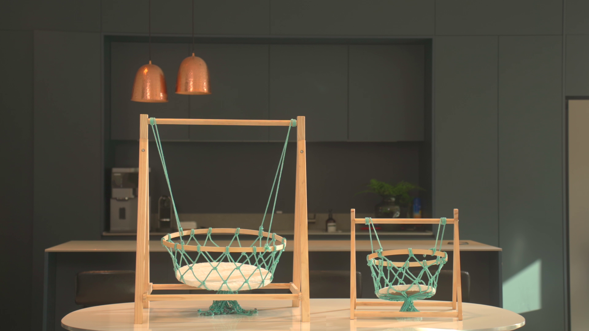 「Fluff Nest」は、猫や犬のためのハンモック型ベッド。軽量で移動しやすく、ペットがリラックスできる心地よい揺れが特徴だ。