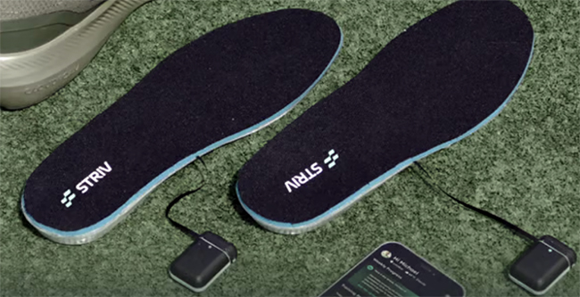 「Striv」はインソールに256個の足圧センサー、バッテリーポッドに9軸モーションセンサーを搭載。