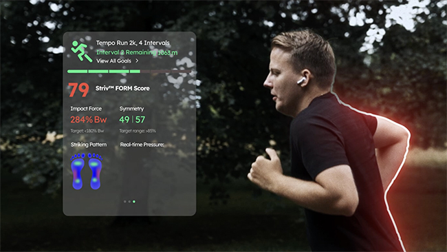 「Striv」はセンサーを搭載したインソール型のランニングトラッカー。データを測定するだけでなく、AIによるフィードバックをリアルタイムで得られるのが特徴だ。
