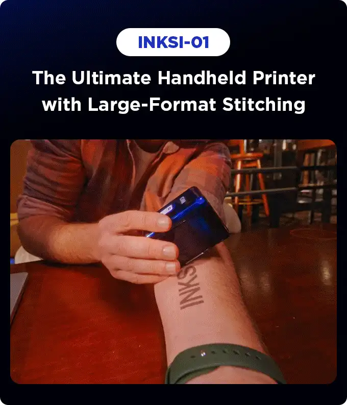 「INKSI-01」は、手のひらサイズで持ち歩ける手持ちプリンター。さまざまな素材に印刷できる。