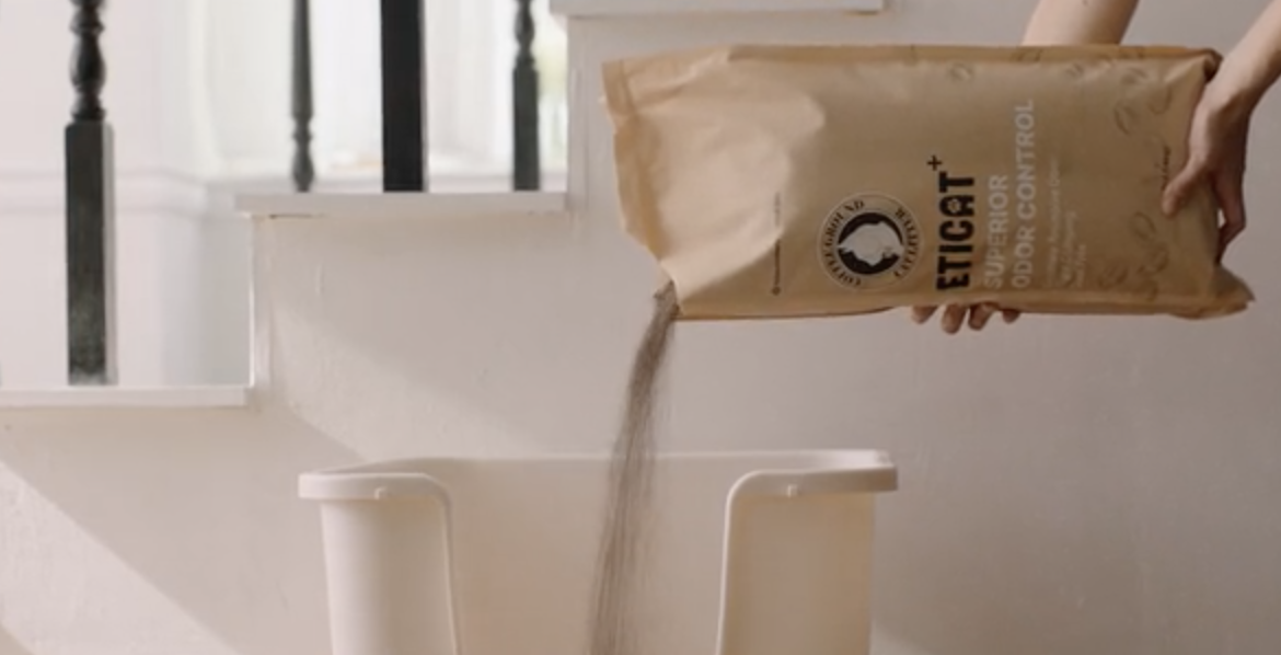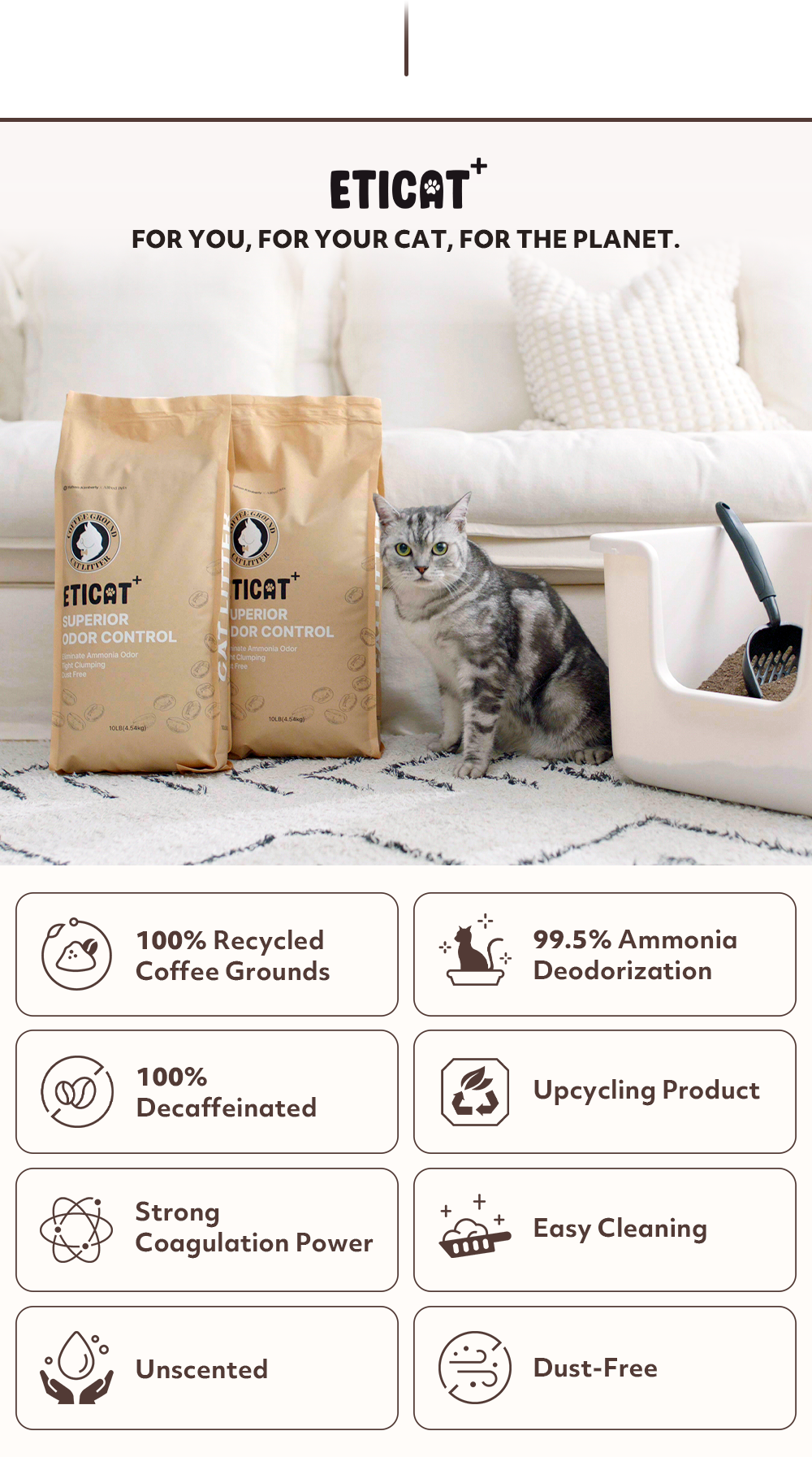 「ETICAT+」は、リサイクルされたコーヒーかすを使用しており、その特性によってアンモニア臭を99.5%抑制するという。