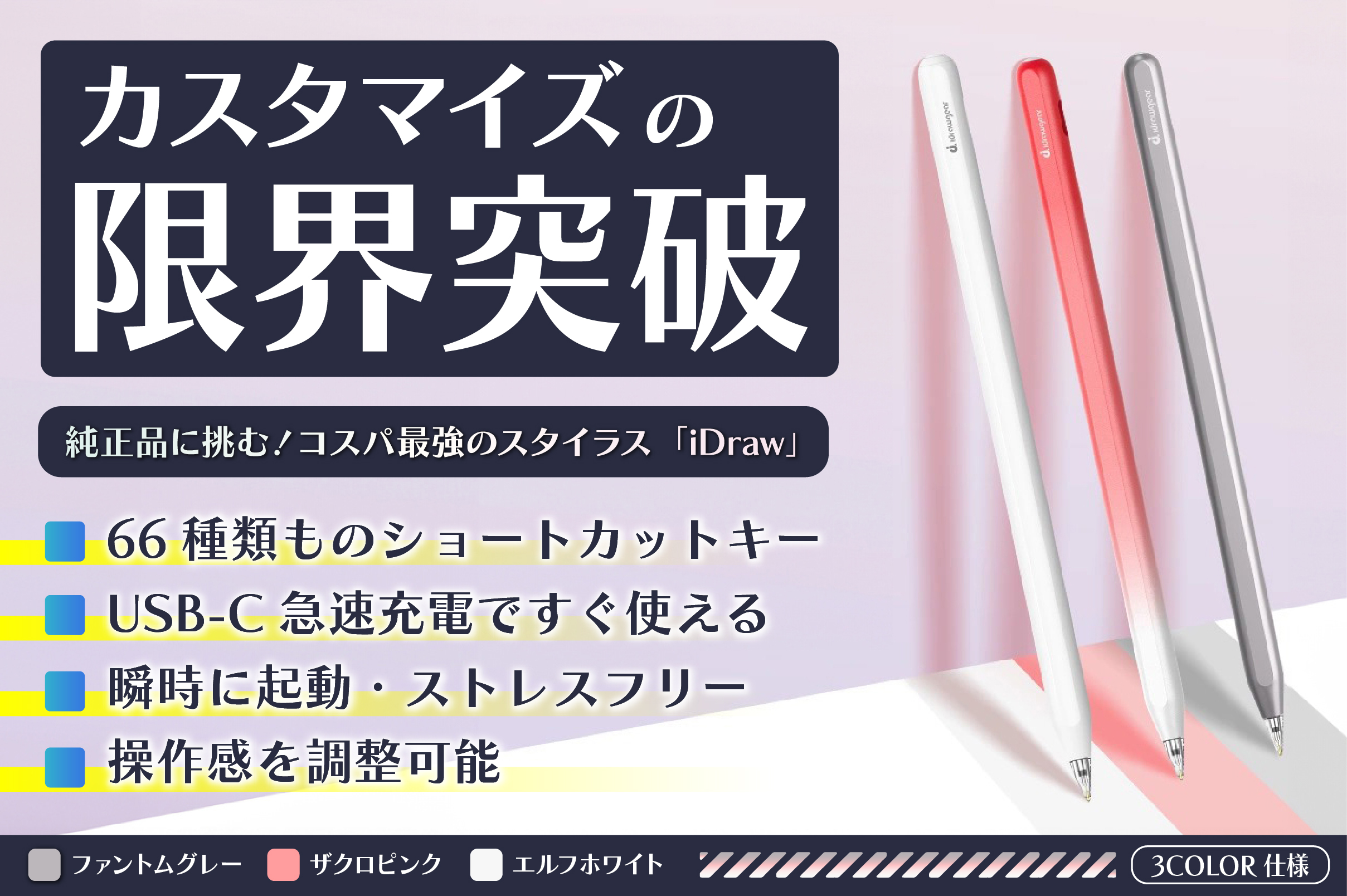 • Apple純正品に挑む!カスタマイズ無限大、コスパ最強のスタイラスの決定版「iDraw」【iPad・iPad Air・iPad mini・iPad Pro対応/傾きセンサー/USB-C 急速充電/マグネット吸着/ペン先交換可/専用アプリ】 | Gloture