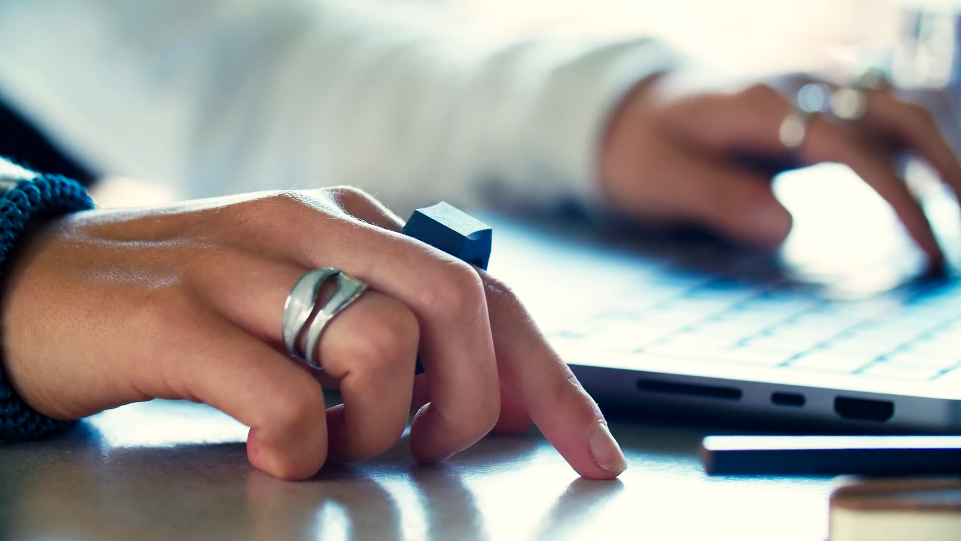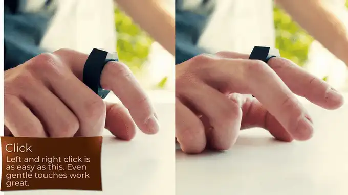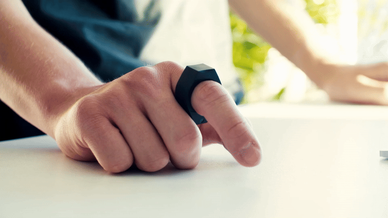 「Padrone Primera」は、指にはめるだけで、机の上をタッチパッドのように使える指輪型デバイス。