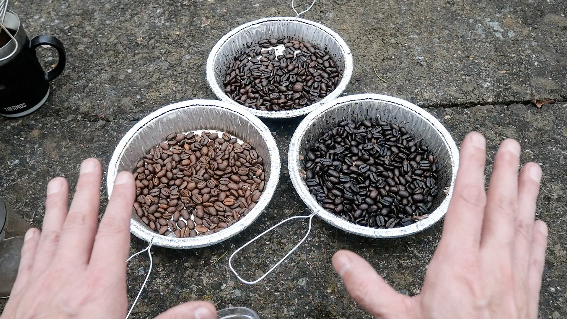 今回は飲み比べてみたくて焙煎時間を変えて3種類作ってみました。全然違うコーヒーに見えますが、これ全部同じ豆なんですよ。
