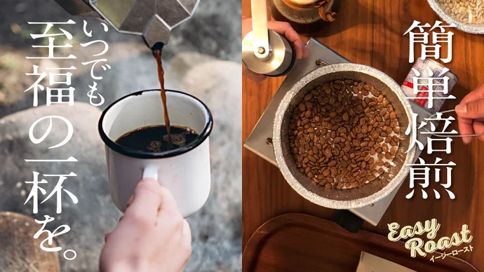 キャンプでの淹れたてコーヒー、美味しいですよね。今までやってみたくて中々手が出せなかったのがコーヒー焙煎。何から準備してよいのか分からなかったのですが、それがメチャクチャ手軽にできるキット「EasyRoast」を試してみました。レビュー用にサンプルを送って頂きました。