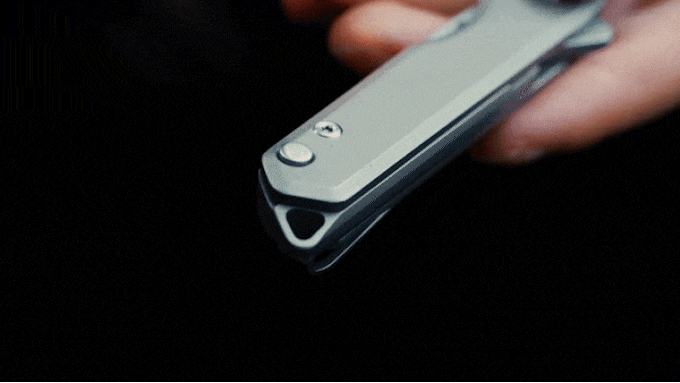 「Ezsharp」は耐久性の高いグレード5チタン製。刃はタブを下げるだけでクイックリリースが可能だ。