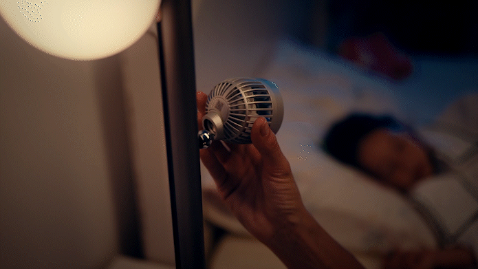 「Sola 1001」は、照射角度40°の広角スポットライト。上下左右に角度調整でき、ボタンで無段階調光できる。