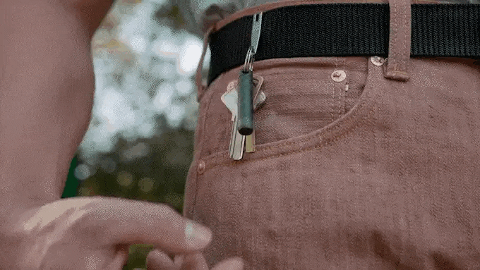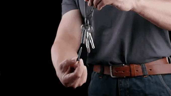 「P3N」は、キーリングなどに取り付けて携帯する仕様。炭素繊維で構成されたペンケースには磁石が埋め込まれており、手軽に着脱できる。