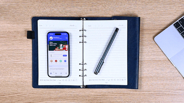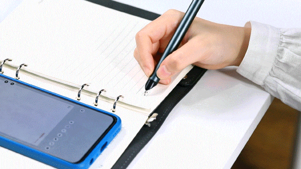 「Masterben 3」は、6穴ルーズリーフタイプのデジタル手帳。専用ペンとスマホアプリをBluetooth接続し、文字やイラストを紙に書くと、紙上の内容が直接スマホへデジタル表示される。
