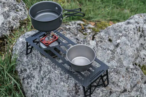 約200℃の耐熱性があり、バーナーから降ろした熱々のクッカーを直置き可能。天板には最大5kgまで物を載せられる。